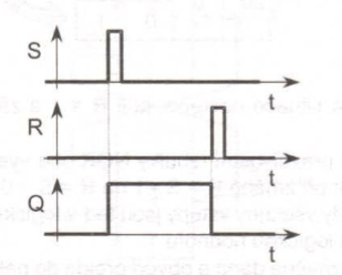 - Klopný obvod překlápí jen během hodinového impulzu, jinak je zavřený. Invertor zajišťuje, že vstupy do původního klopného obvodu RS mohou být pouze rozdílné (je-li R = 1, pak S = 0 a naopak