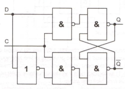 - Pokud obvod RS doplníme o další dva čeleny NAND, dostaneme obvod se stejnými vlastnostmi ale jako výstup bude možné měnit jen během synchronizace hodinového pulzu C